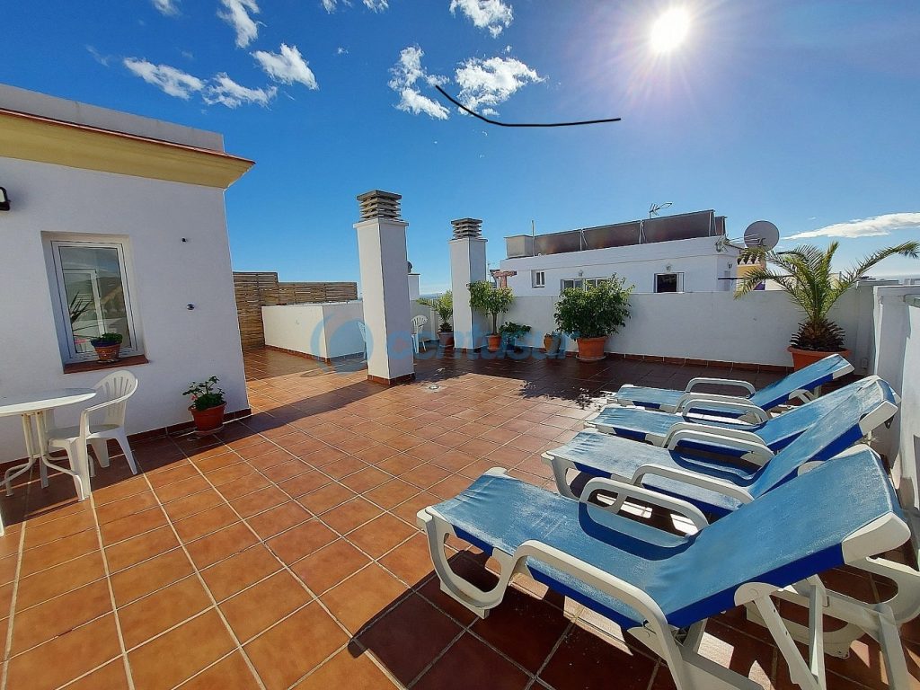 Estudio / Habitación con baño privado. Sin cocina. (ventana con vistas al patio interior). Terraza en la planta alta del edificio. Habitacion disponible para alquilar por larga temporada en Nerja, vacaciones o winter rentals.